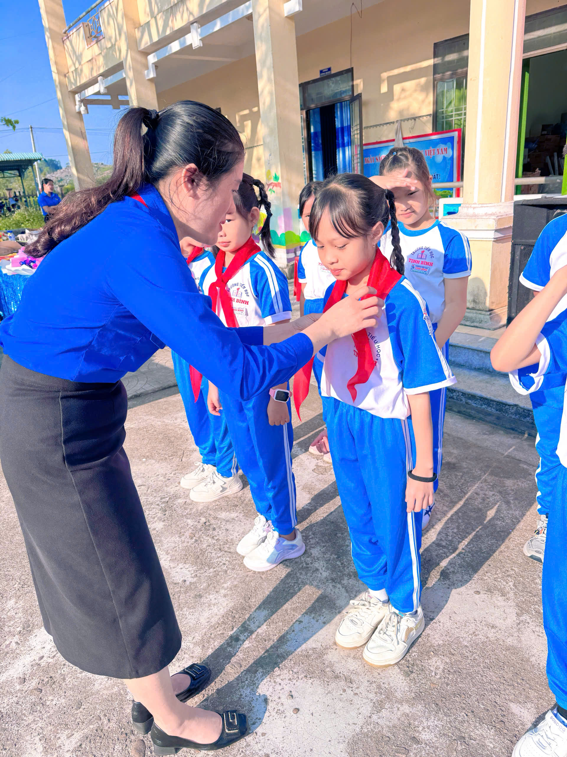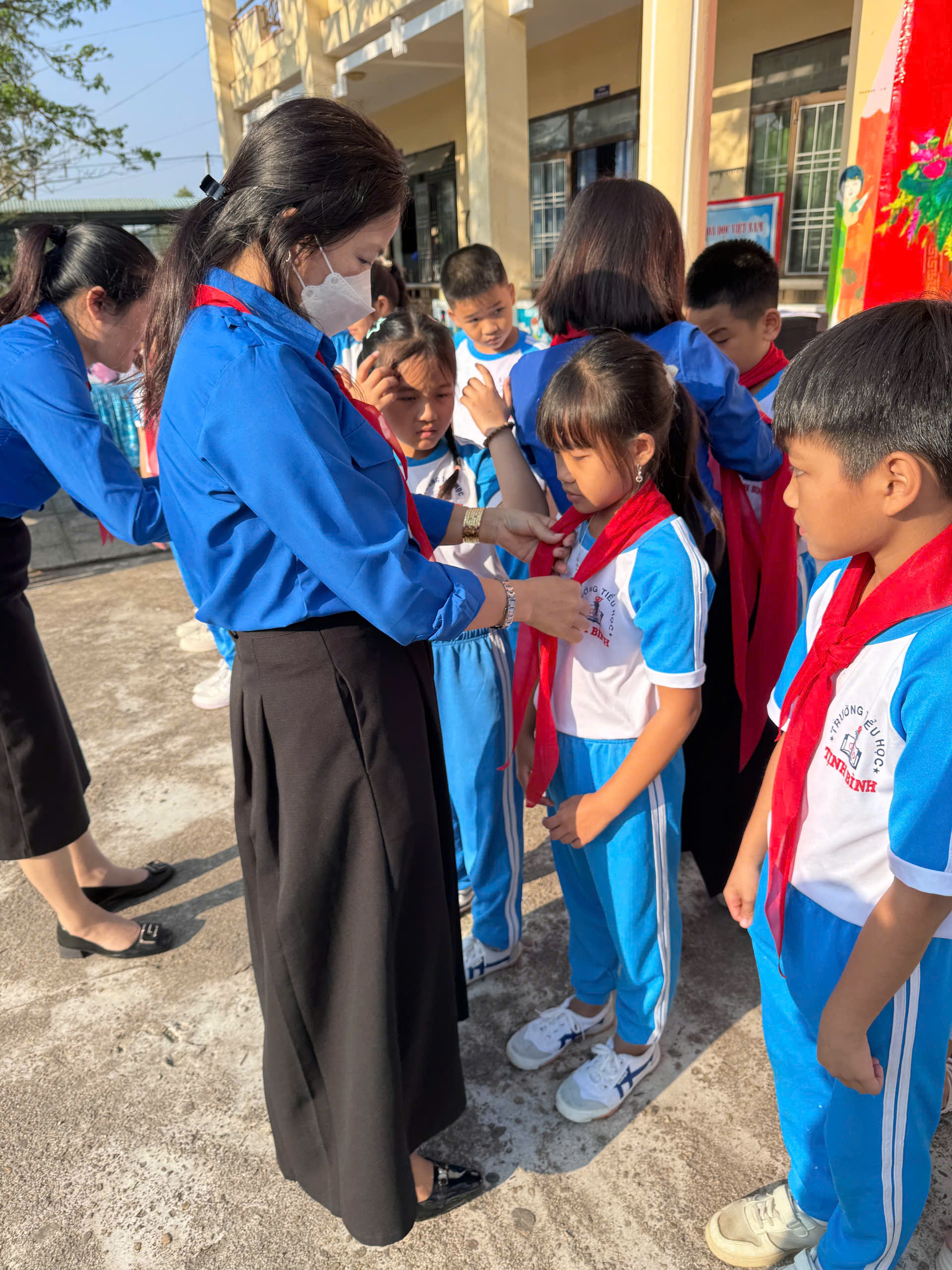 🎗️ Lễ kết nạp đội viên mới dành cho học sinh khối 3 là điểm nhấn xúc động của chương trình. Những chiếc khăn quàng đỏ được trao tận tay không chỉ là niềm vinh dự mà còn là lời nhắc nhở các em về trách nhiệm, về sự nỗ lực rèn luyện để xứng đáng là đội viên Đội TNTP Hồ Chí Minh.