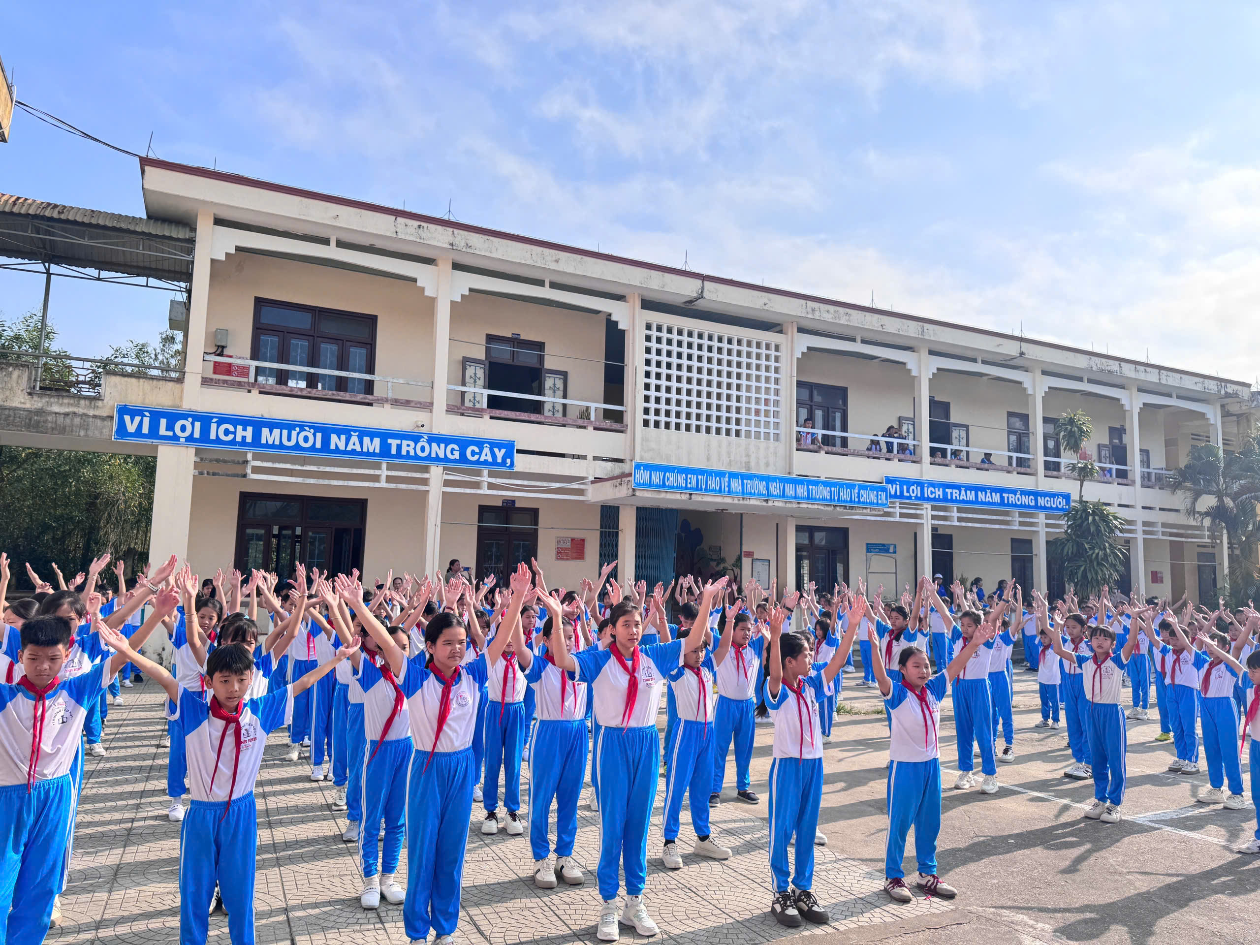 💃 Màn đồng diễn thể dục diễn ra sôi động, đồng đều, thể hiện tinh thần đoàn kết, sức trẻ và sự tự tin của học sinh toàn trường.