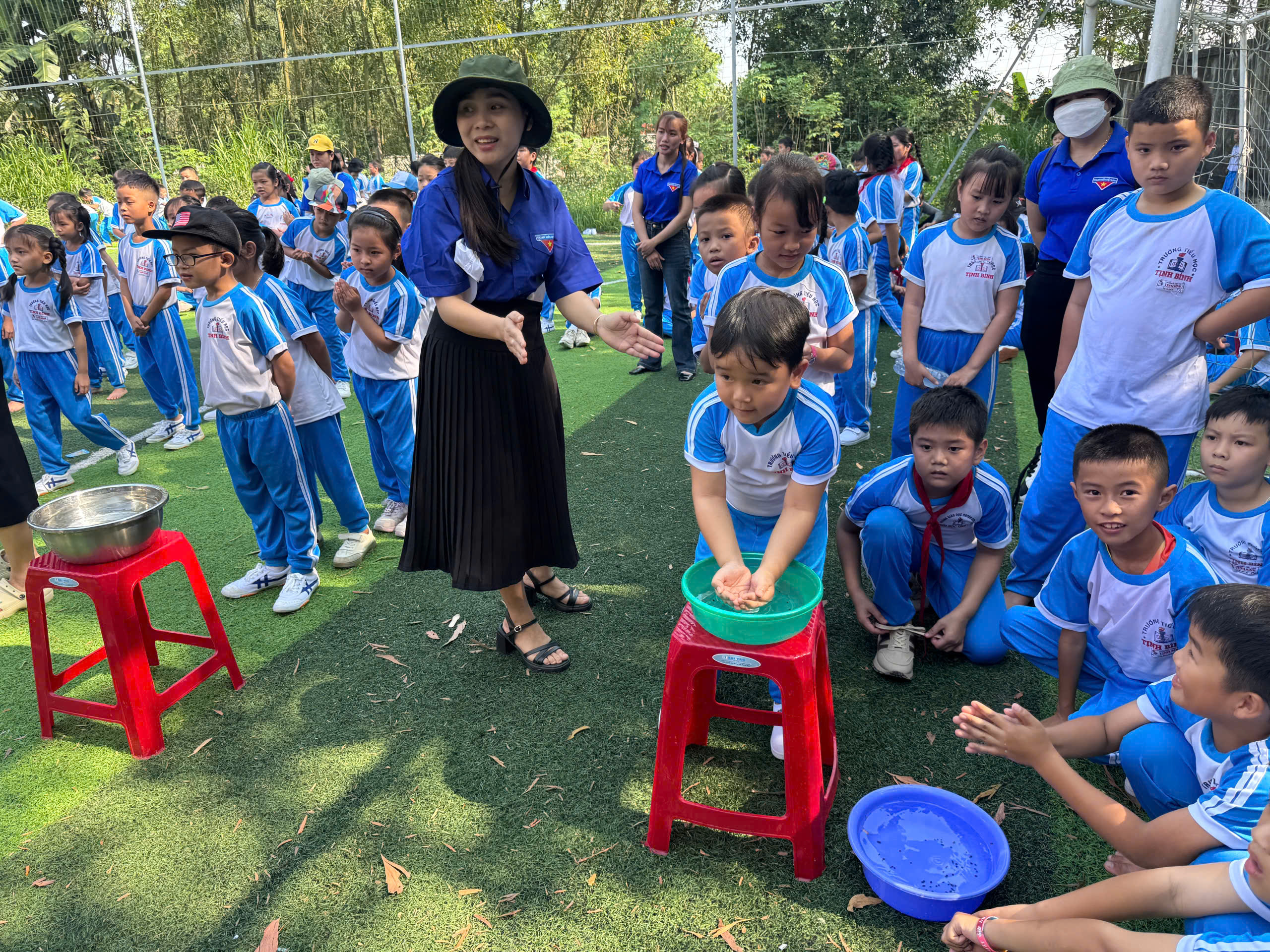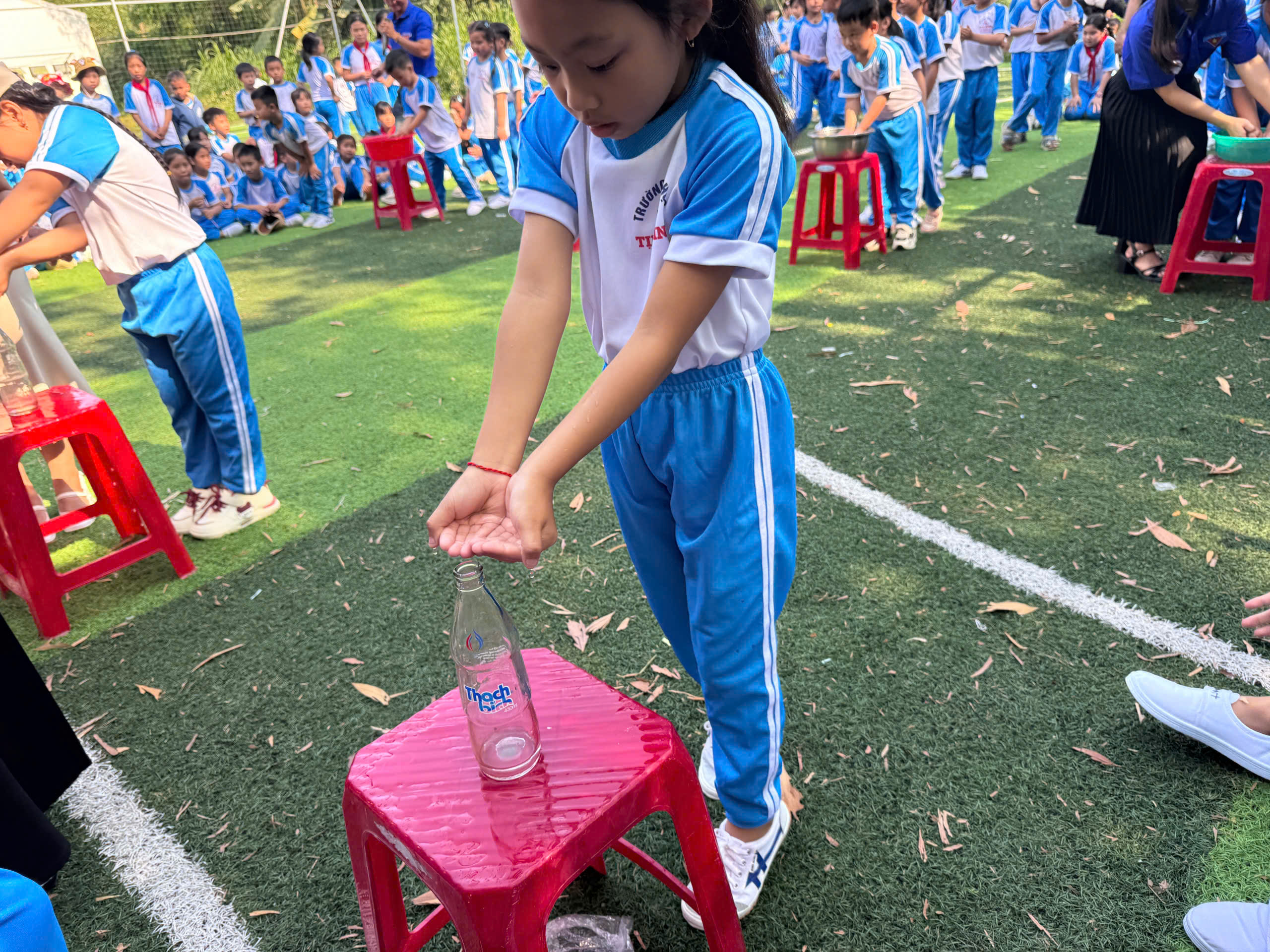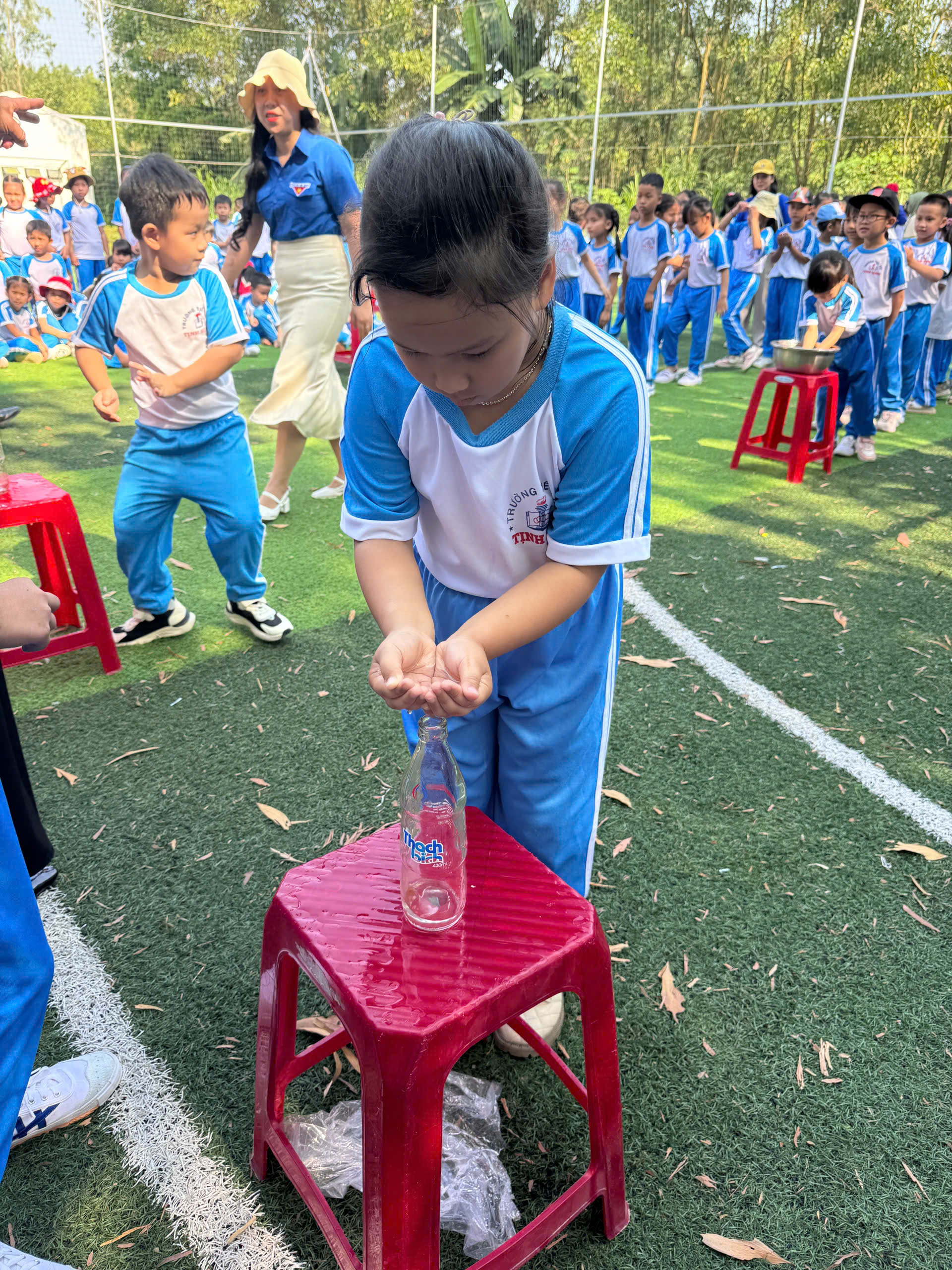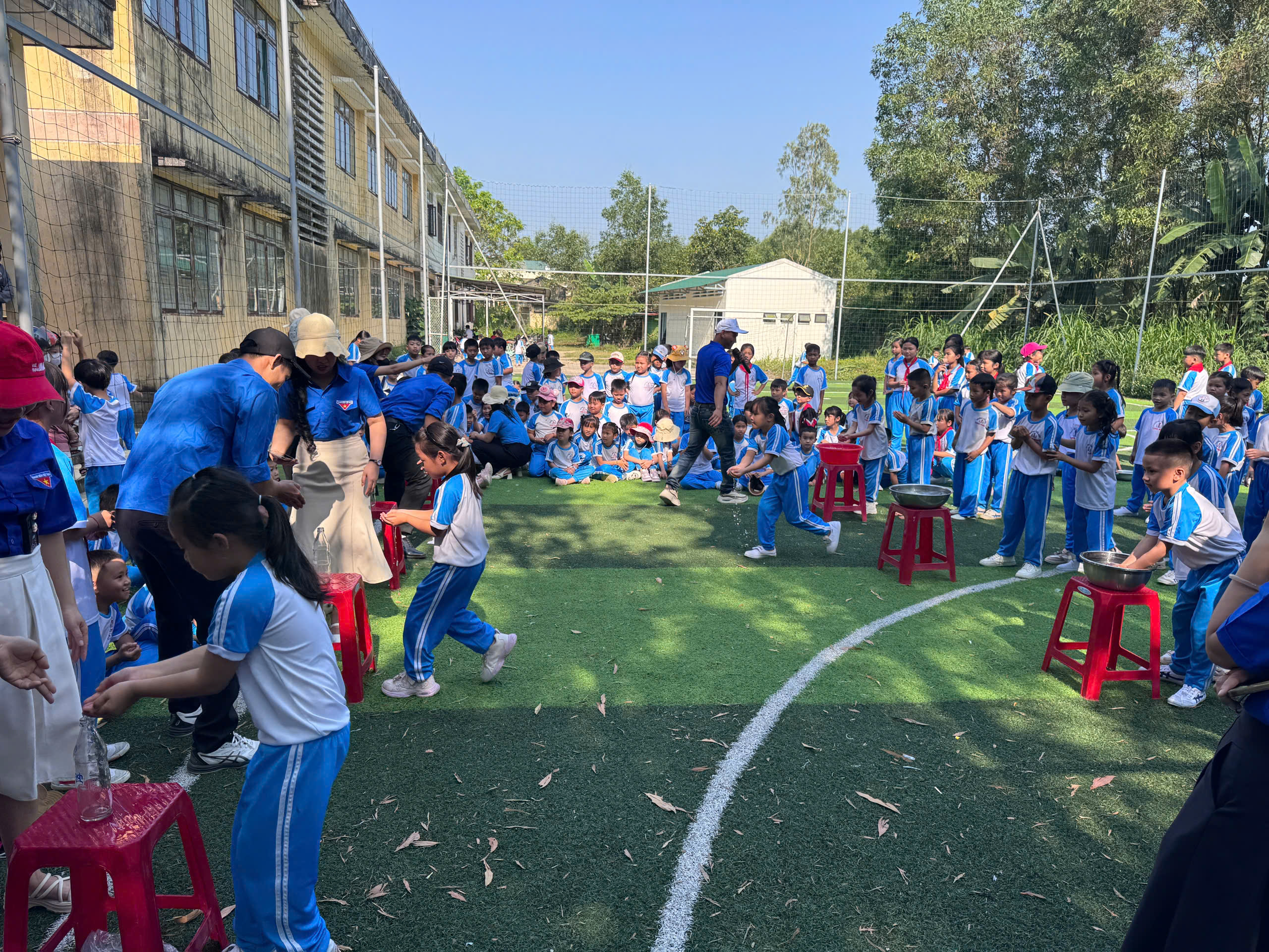 🏃 Các trò chơi vận động như đổ nước vào chai, chuyền vòng đã mang đến không khí vui tươi, hào hứng. Qua từng phần chơi, các em được rèn luyện sự khéo léo, tinh thần hợp tác, tính kiên trì và sự nhanh nhẹn. Tiếng cười giòn giã, những khoảnh khắc cổ vũ nhiệt tình đã góp phần làm nên một ngày hội đầy sắc màu và ý nghĩa.