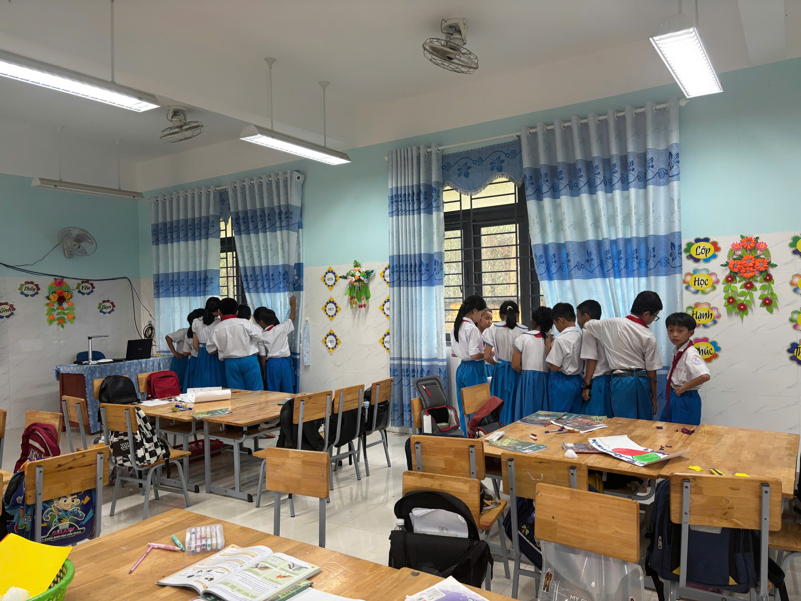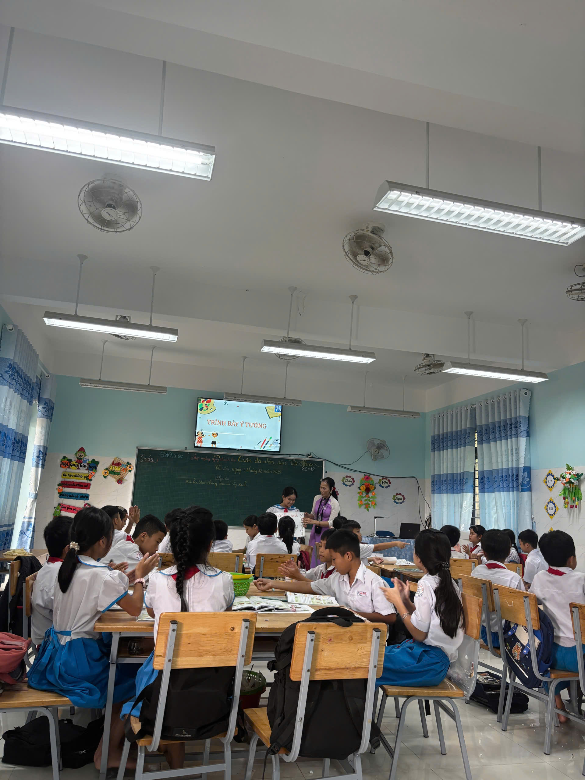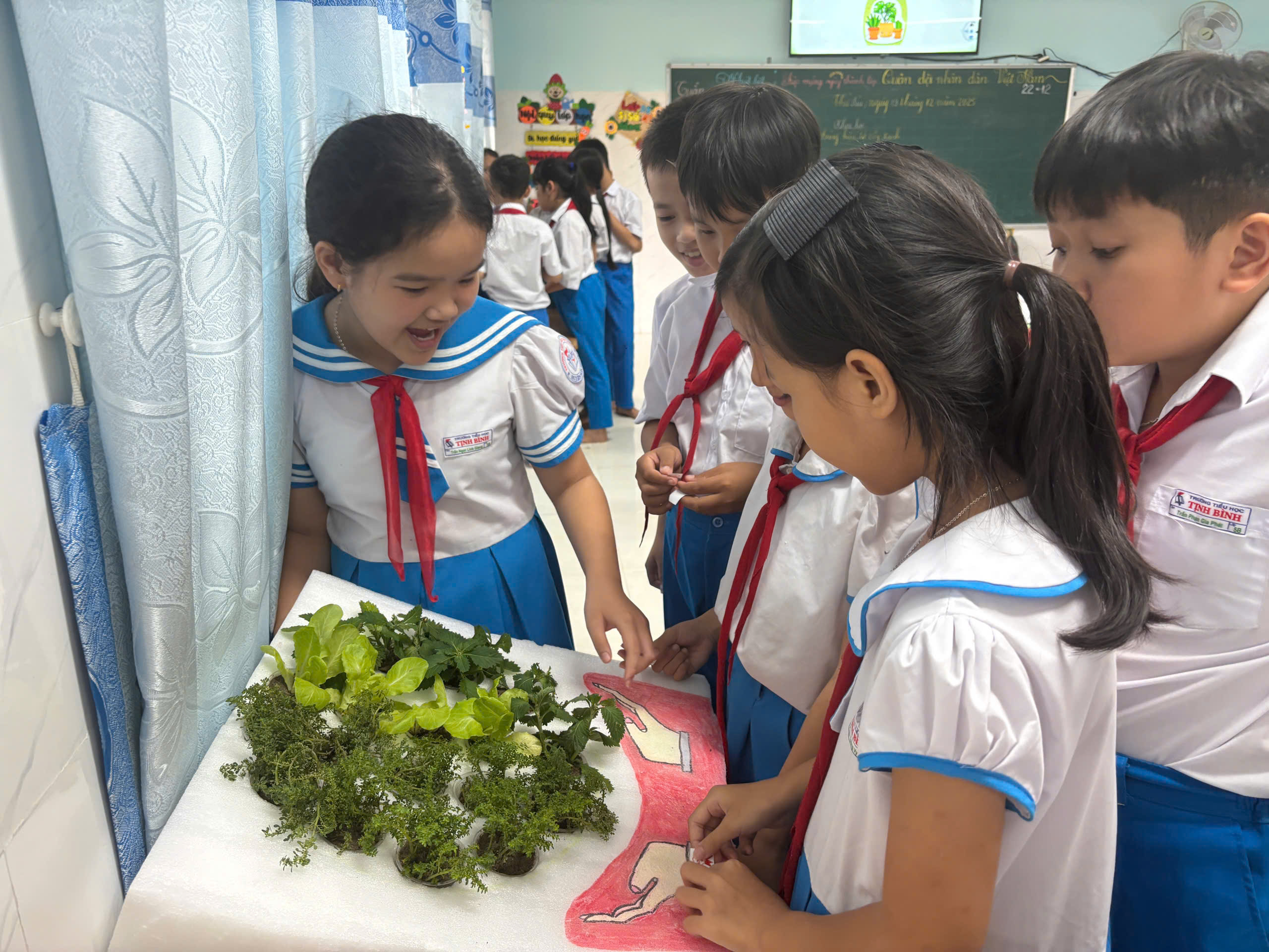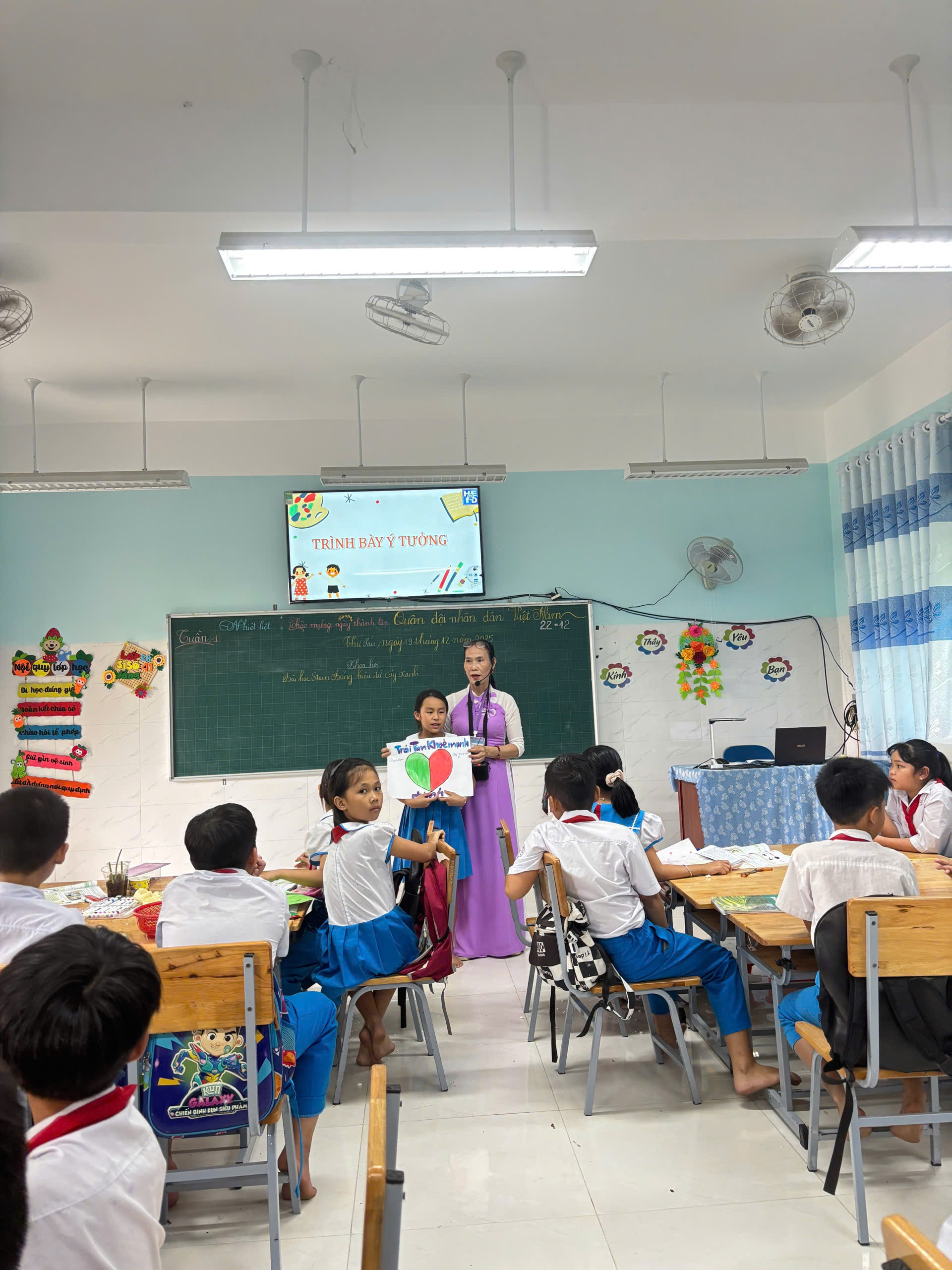Tiết học kết thúc bằng phần chia sẻ sản phẩm sáng tạo, giúp các em thêm tự tin, hào hứng và thấy được ý nghĩa của việc học qua trải nghiệm.