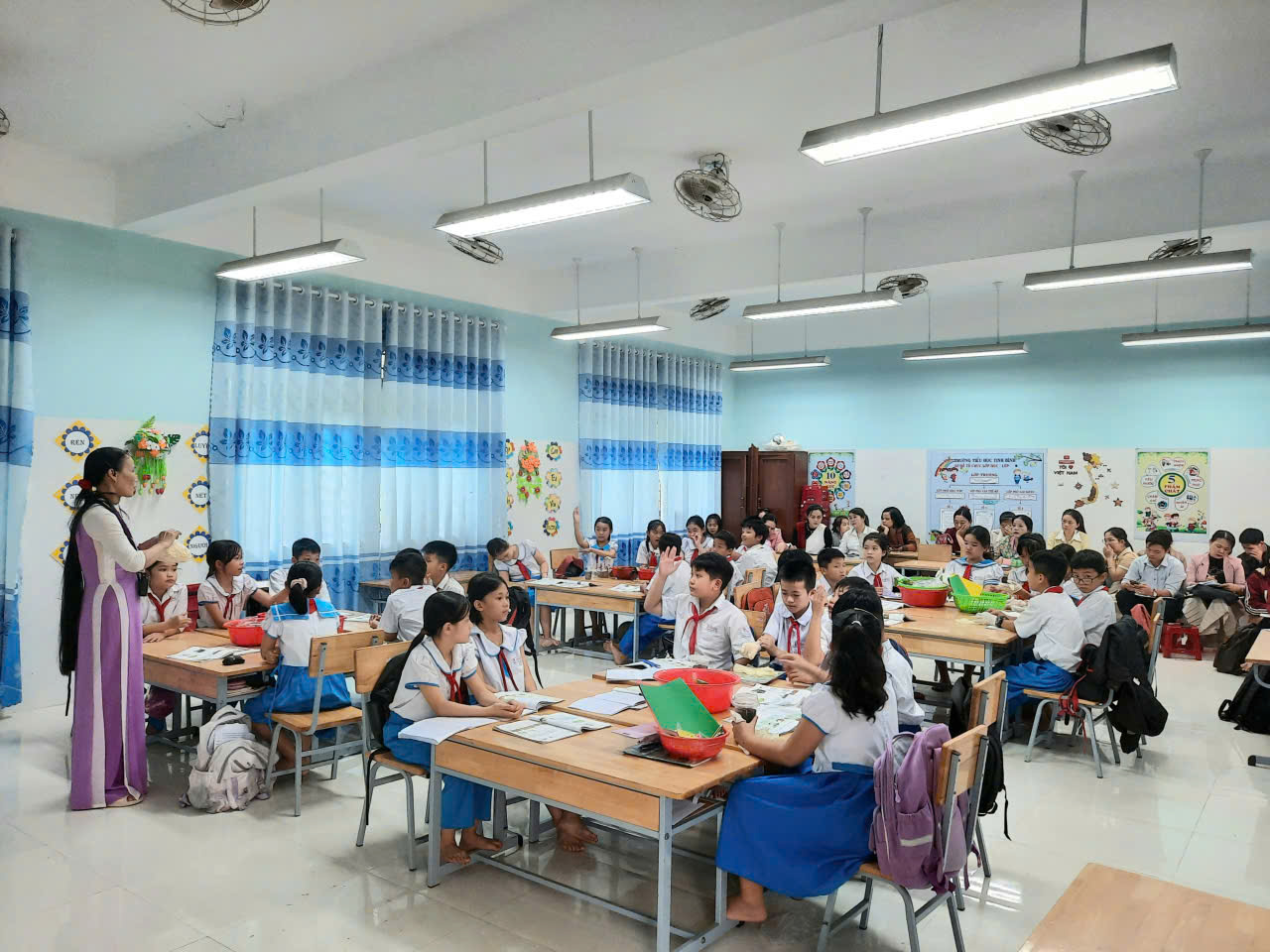 Trong không khí thi đua đổi mới phương pháp dạy học theo định hướng phát triển năng lực học sinh, buổi sinh hoạt chuyên đề tại Trường Tiểu học Tịnh Bình đã diễn ra sôi nổi và hiệu quả. Chuyên đề được xây dựng cụ thể, khoa học, các giải pháp đưa ra mang tính thiết thực và hiệu quả, dễ áp dụng; có thể nhân rộng các giải giáp ở các khối lớp trong nhà trường. Đặc biệt hợn, với tiết dạy minh họa bài học STEM do cô giáo Nguyễn Thị Như Sang – giáo viên lớp 5A – thực hiện. Bài học có chủ đề “Bảng hiệu từ cây xanh”, được tổ chức dựa trên mô hình giáo dục STEM hiện đại.