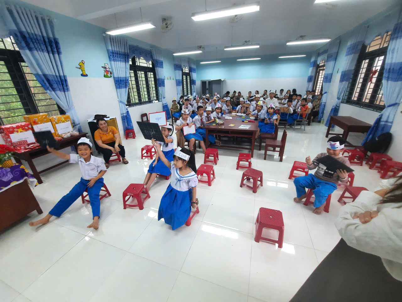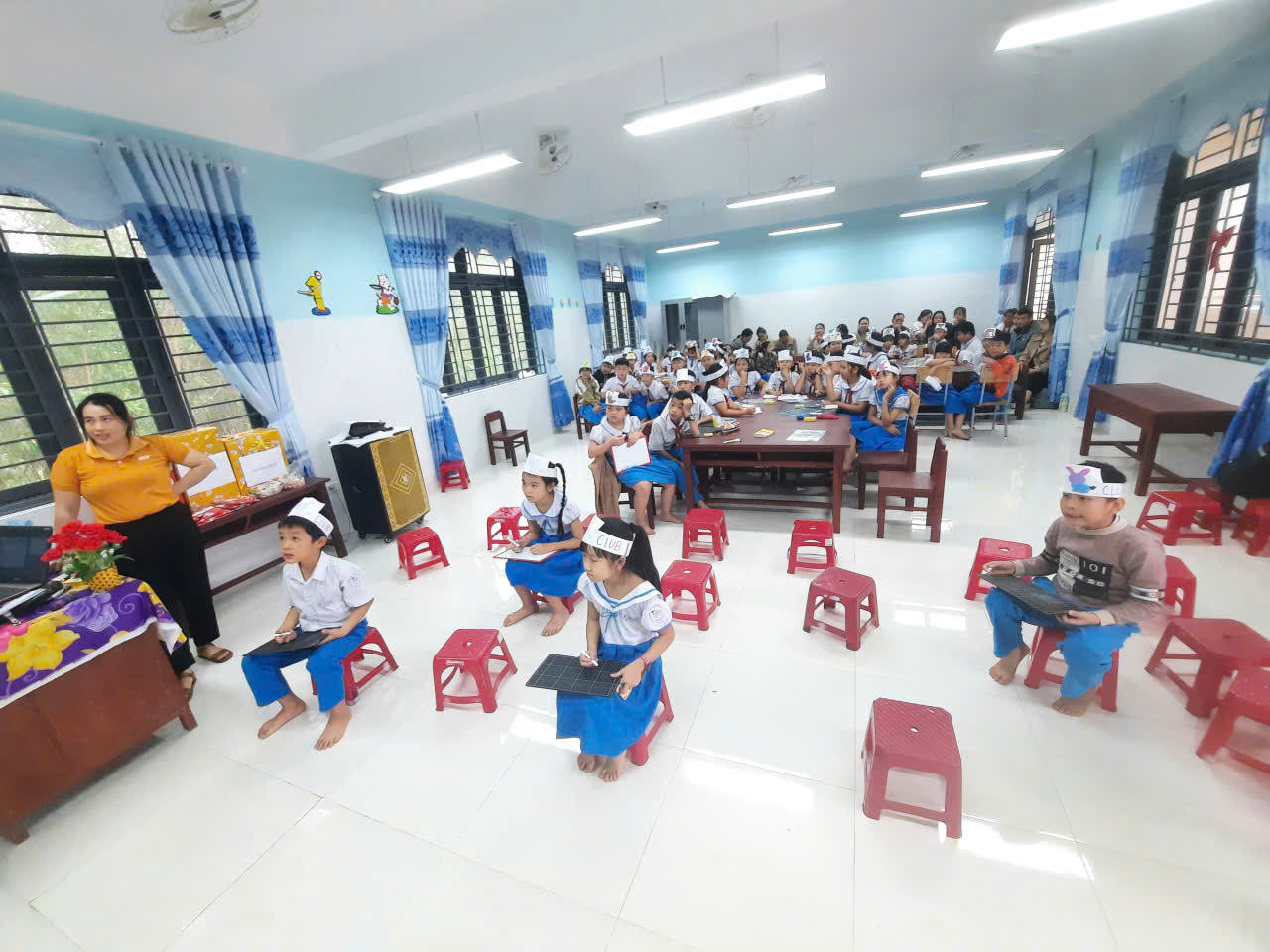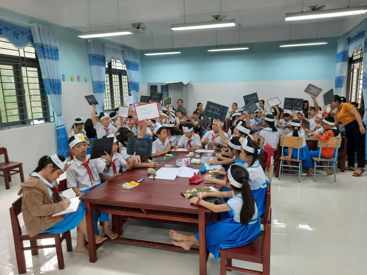 Vừa qua, trường Tiểu học Tịnh Bình đã tổ chức thành công Câu lạc bộ Tiếng Anh với chủ đề ” Merry Christmas! ” ( Giáng sinh vui vẻ ). Đây không chỉ là sân chơi bổ ích mà còn là dịp để các em học sinh thể hiện tài năng, sự tự tin và khả năng ngoại ngữ của mình. Tạo môi trường học tập vui vẻ, tự nhiên; rèn luyện kỹ năng giao tiếp, nghe-nói; tăng vốn từ vựng, phát âm chuẩn; kích thích tư duy, sự tự tin; phát triển kỹ năng mềm (làm việc nhóm, xử lý tình huống); và xây dựng niềm yêu thích ngoại ngữ, tạo nền tảng vững chắc cho tương lai. Tăng sự tự tin: Giúp học sinh mạnh dạn thể hiện bản thân, không còn sợ mắc lỗi khi giao tiếp trước đám đông. Kích thích tư duy: Học tiếng Anh giúp não bộ hoạt động linh hoạt hơn, tăng khả năng ghi nhớ và giải quyết vấn đề. Phát triển kỹ năng mềm: Rèn luyện kỹ năng làm việc nhóm, thuyết trình, tổ chức, xử lý tình huống thông qua các trò chơi. Tạo niềm yêu thích: Biến việc học tiếng Anh thành một sân chơi bổ ích, khơi gợi đam mê và thái độ tích cực.