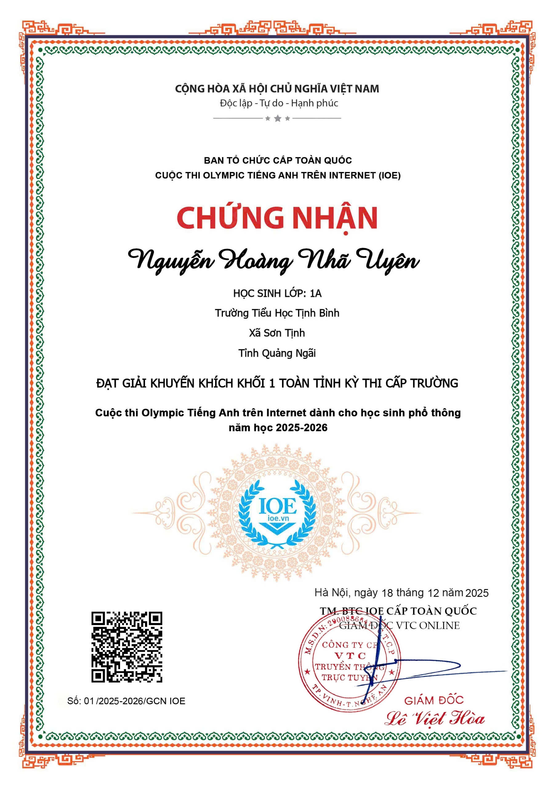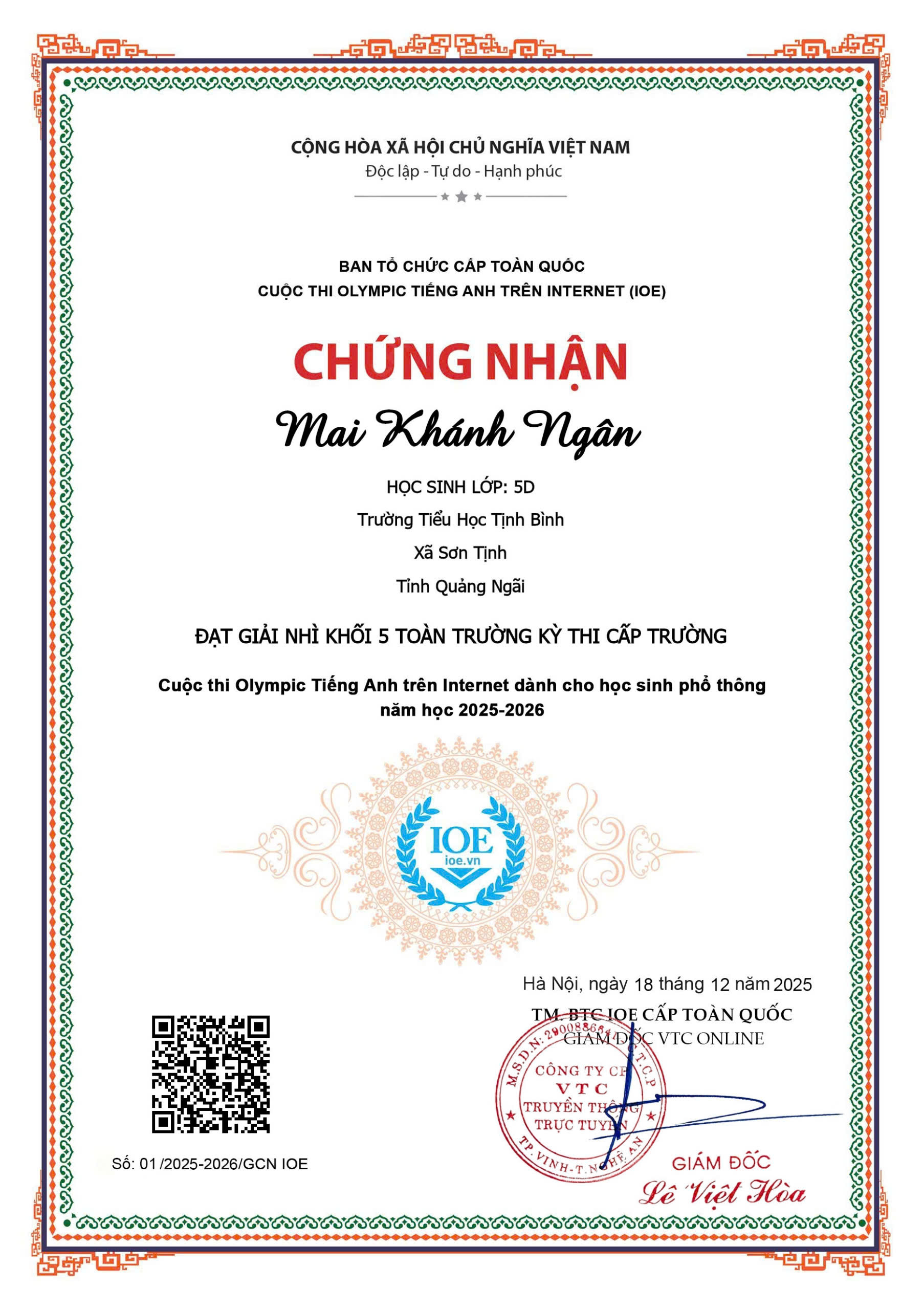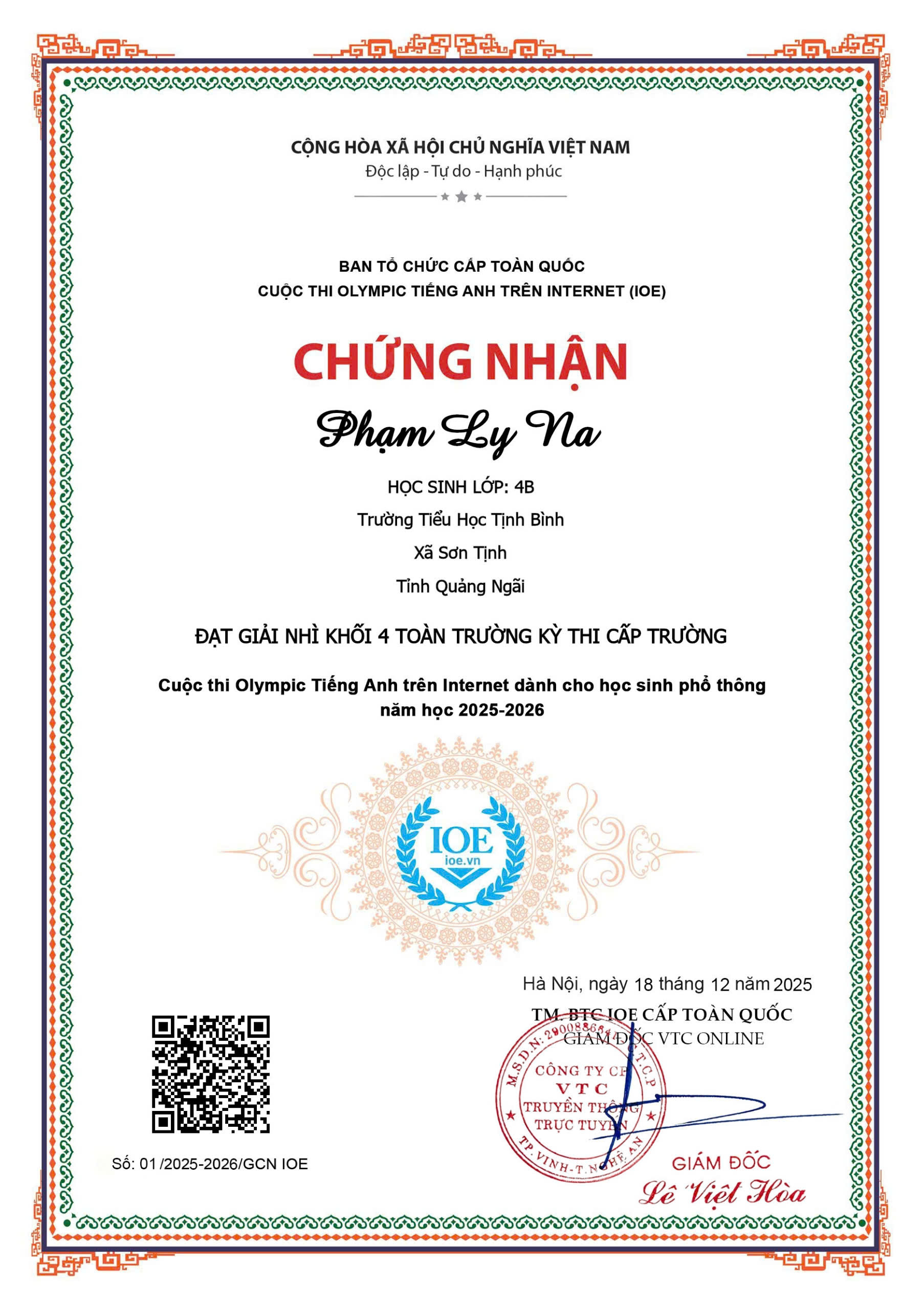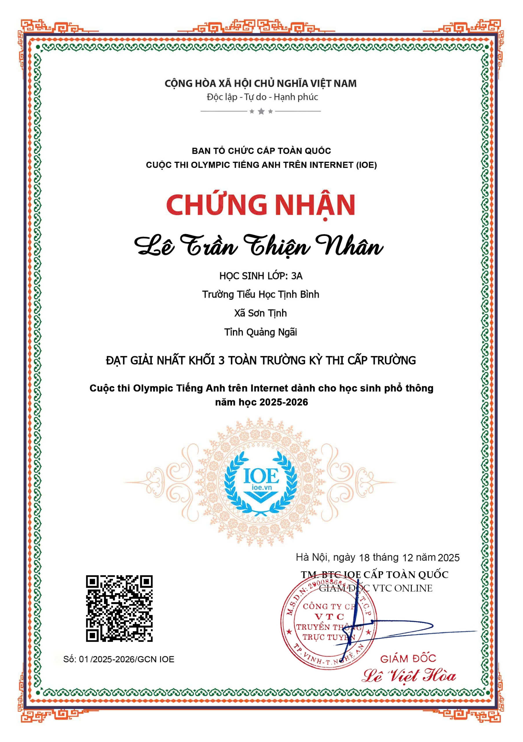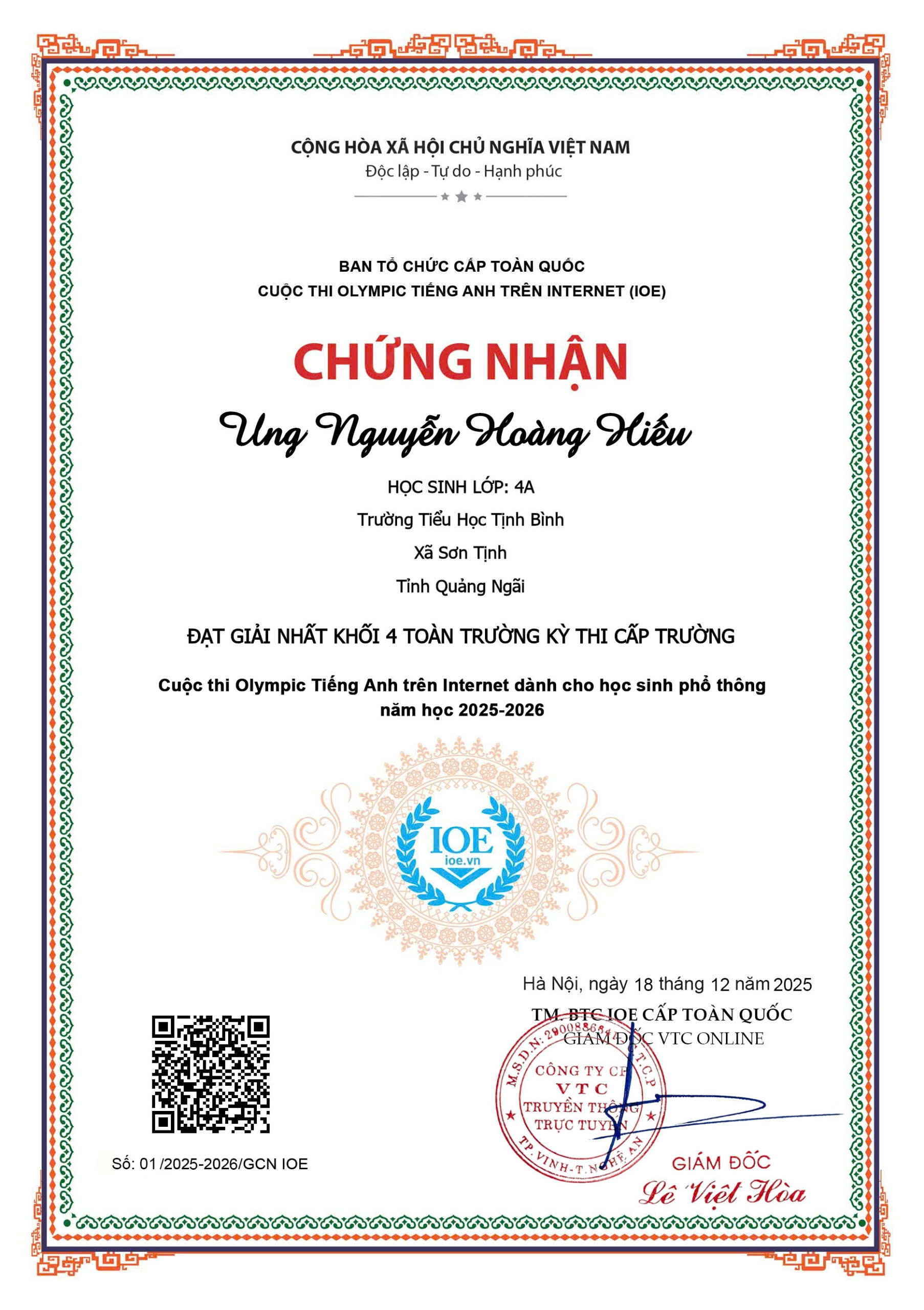 TRƯỜNG TIỂU HỌC TỊNH BÌNH TỔ CHỨC KÌ THI IOE CẤP TRƯỜNG NĂM HỌC 2025-2026